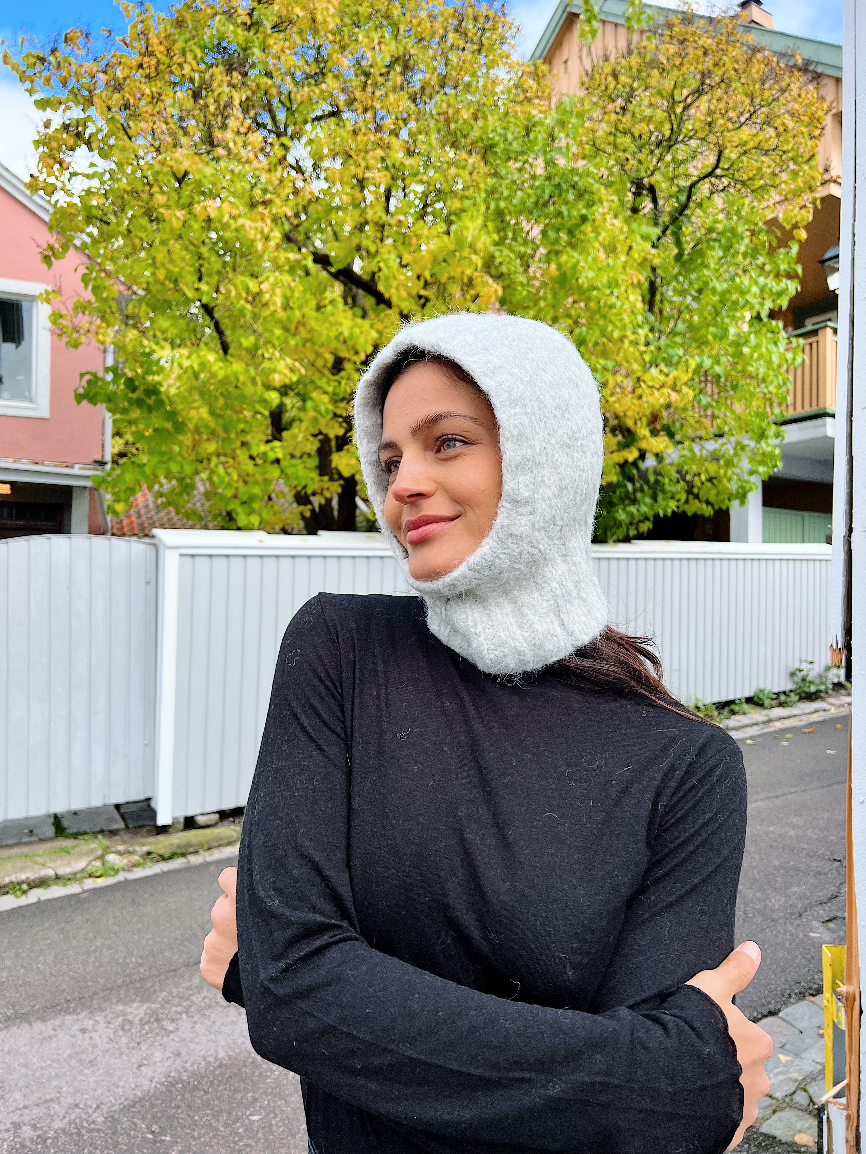«Runde Balaclava» fra ILAG. Den perfekte balaclava til vinteren. Chunky look med ribbet halsåpning. HÅNDSTRIKKET.