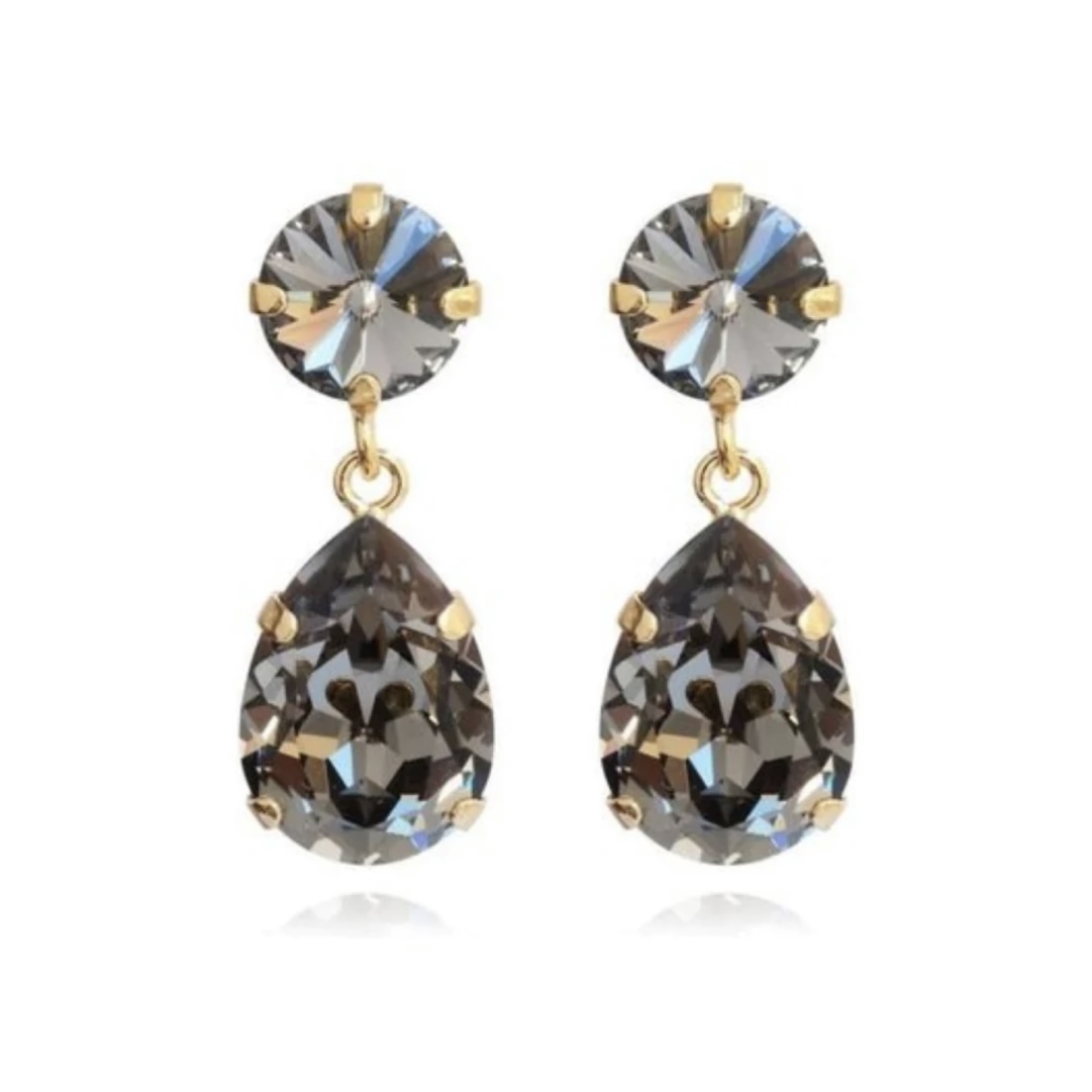 «Mini drop earrings» fra Caroline Svedbom. Vakre delikate mini-dråpeøreringene i «Gold Black Diamond» farge som setter prikken over í-en på ethvert antrekk! Disse nydelige, øredobbene er klassiske med et hint av 60-talls glamour, disse blir vi aldri lei!