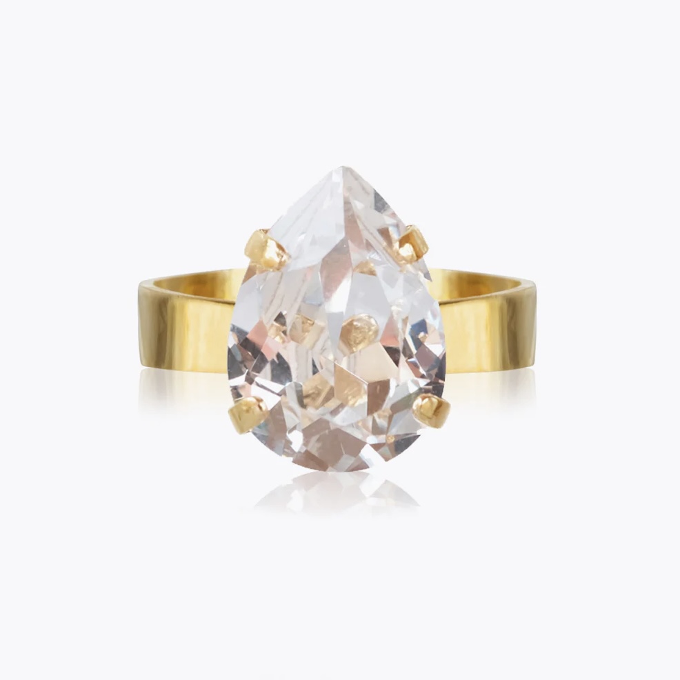 «Mini drop ring» fra Caroline Svedbom. Vakker ring i gullbelagt messing med lekker swarovskikrystall og passer til alle med sin justerbare bakside. Denne ringen er en perfekt detalj for enhver anledning.
