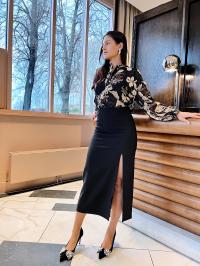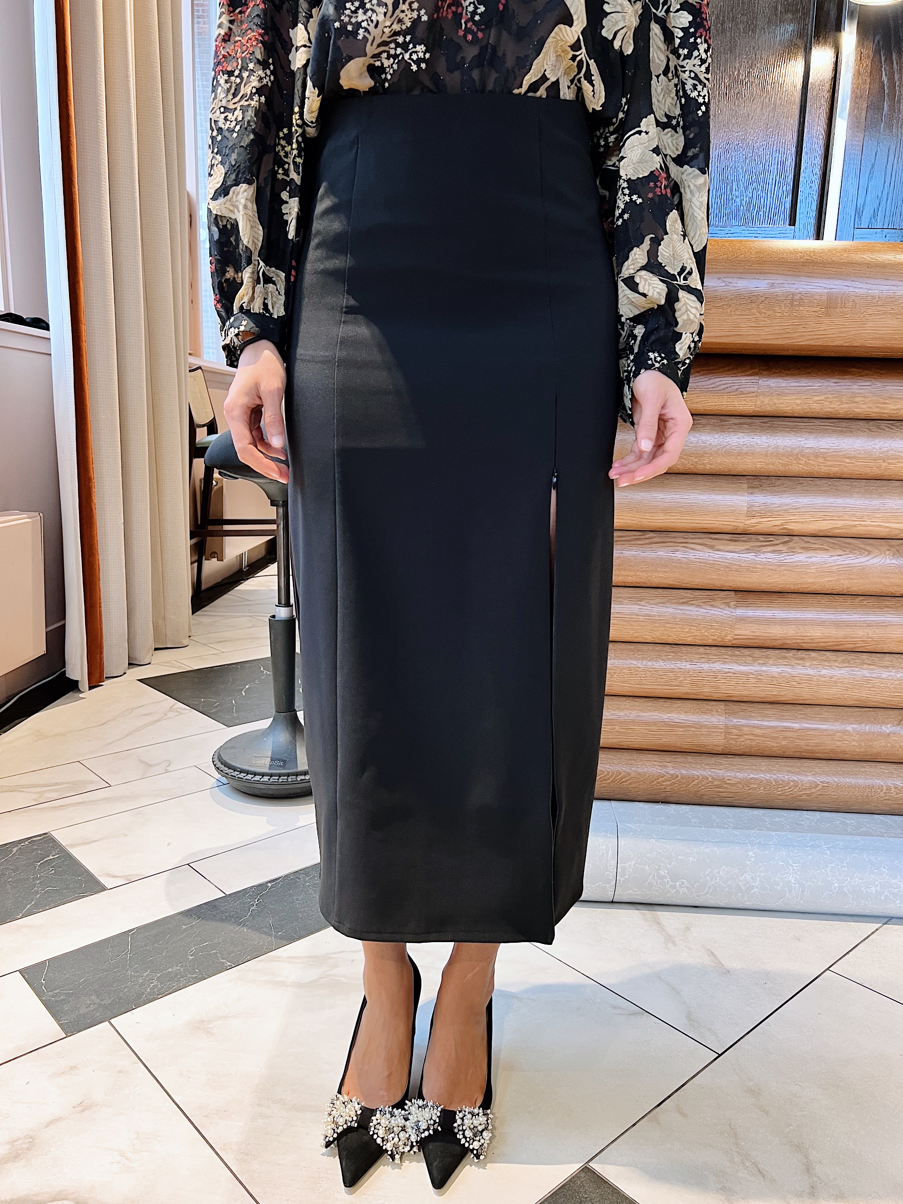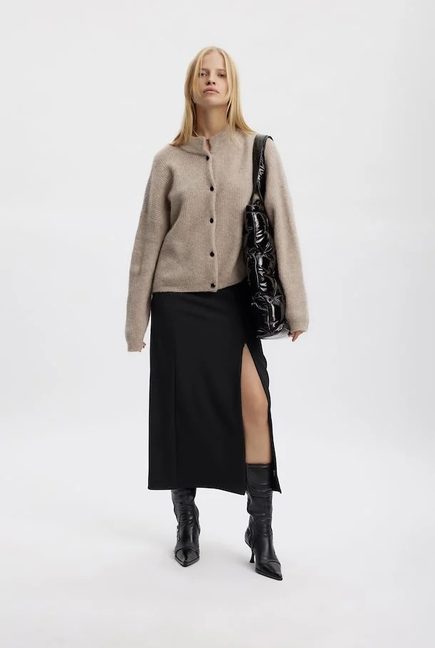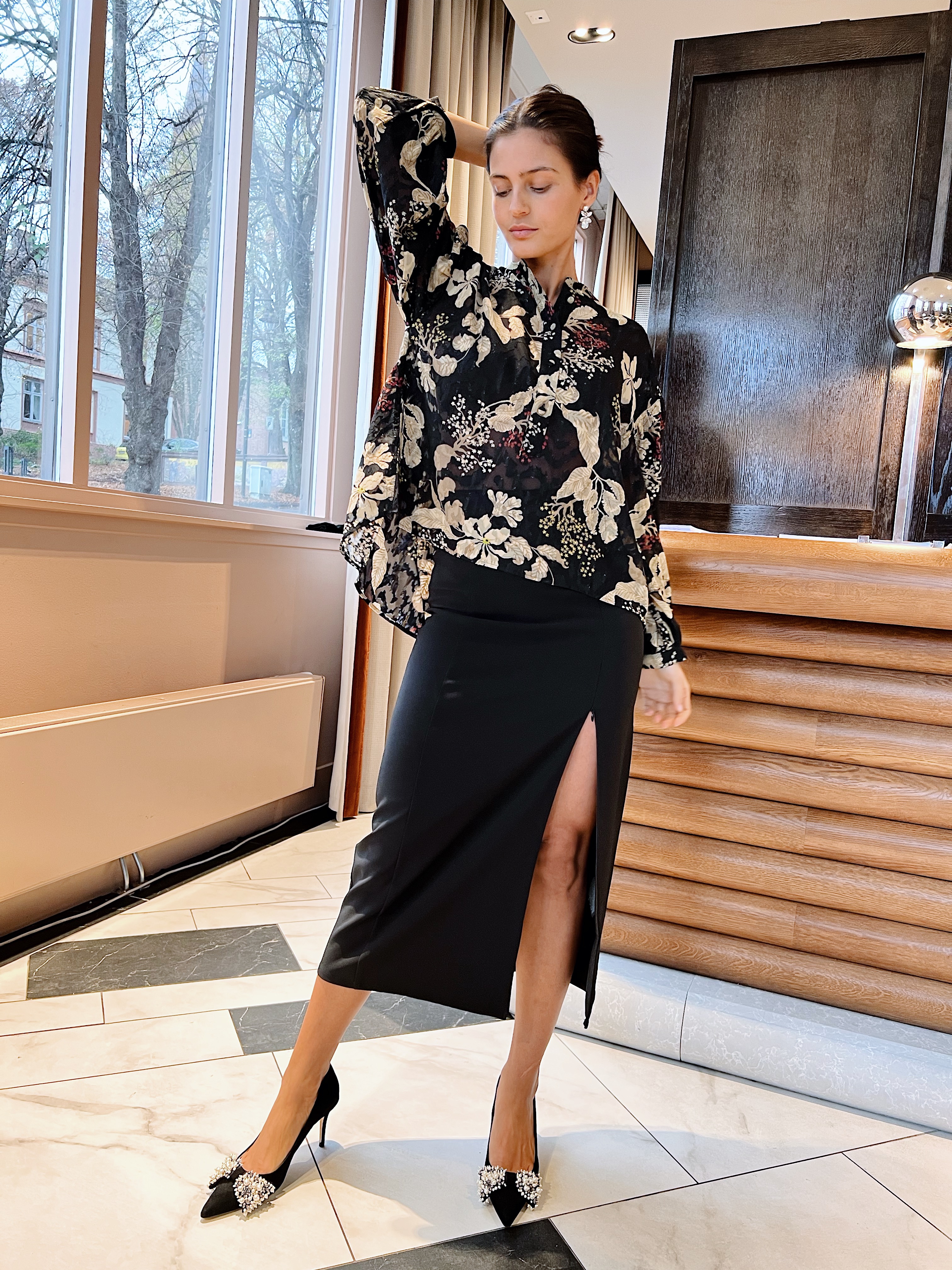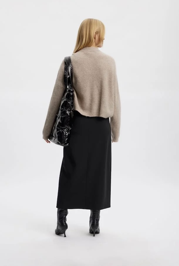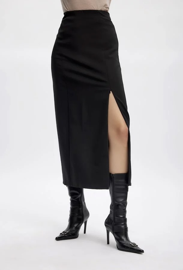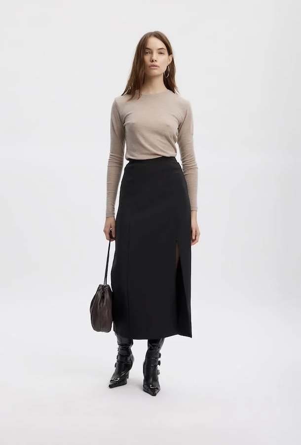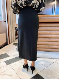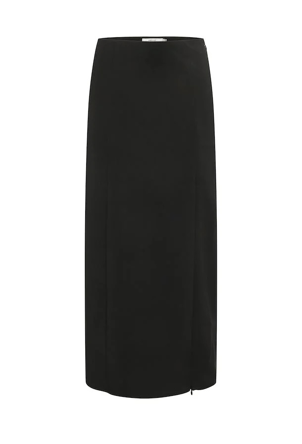 «Joelle long skirt» fra Gestuz. Klassisk sort skjørt med høy midje. Slim fit i fasongen og splitt på ene siden med glidelås. Lang i modellen og normal i størrelsen.