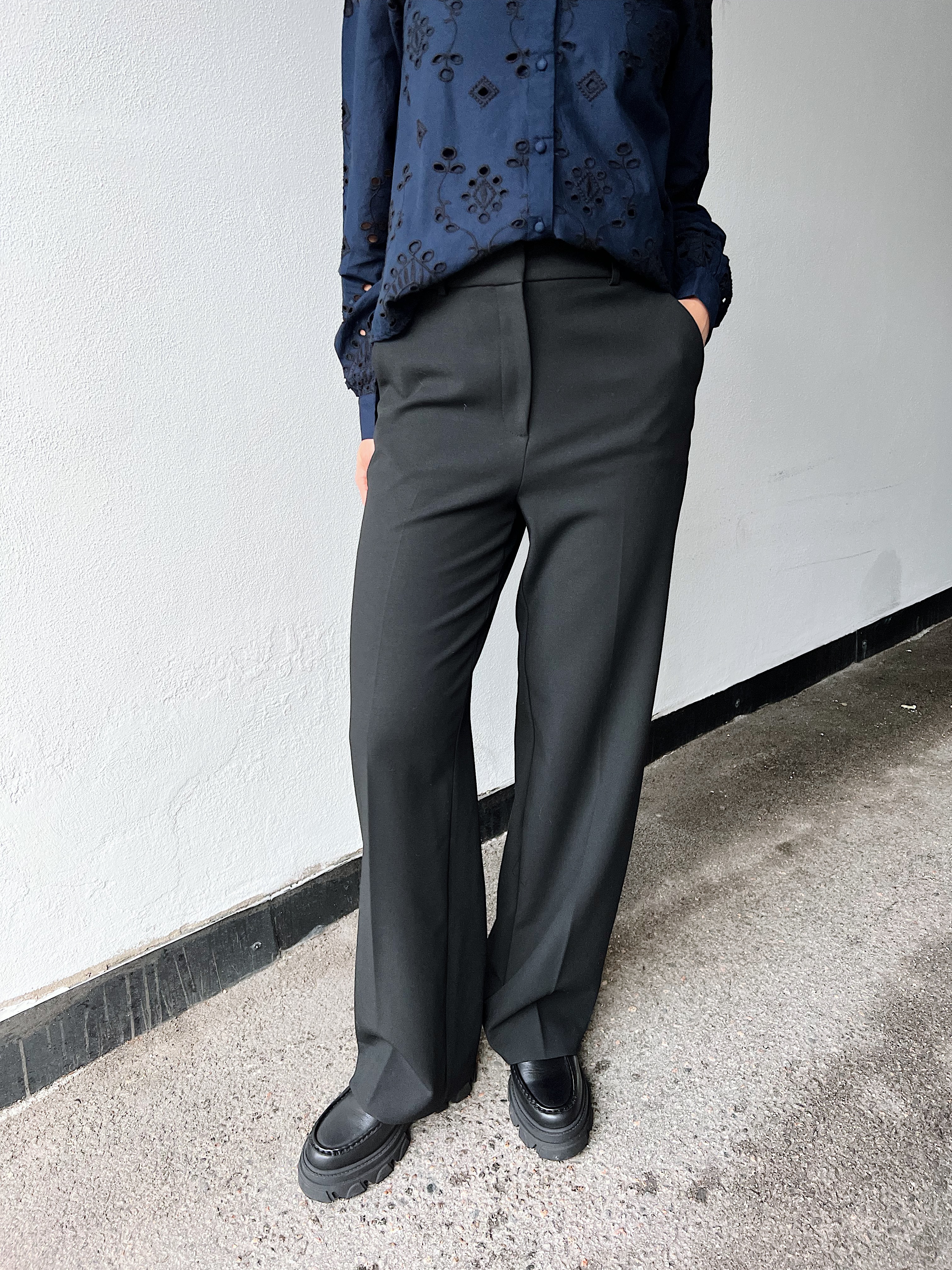«Myla wide pant» fra Selected Femme. Klassisk dressbukse med vide, rette ben i beige. Buksen er høy i livet og har stikklommer i sidene og jukselommer bak. Lukkes med hemper og glidelås. Denne er svært allsidig da du fint kan bruke den til både hverdag, jobb og i festsammenheng!