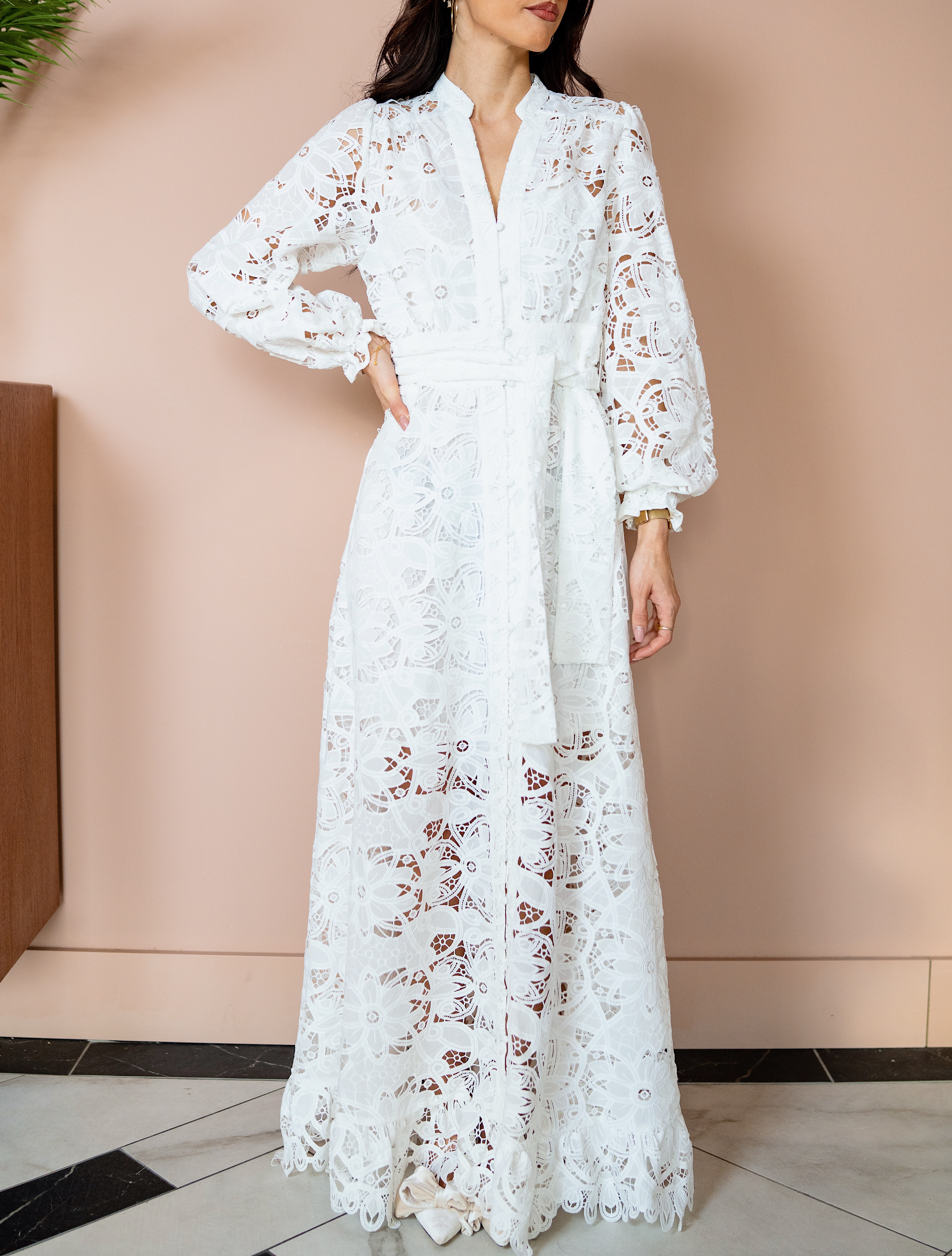 «Lenna maxi dress» fra Love Lolita. Vakker maxi hvit kjole med de nydeligste broderiene. Kjolen er laget med lekre broderier og har store ermer. Kjolen er løstsittende og belter i midjen.