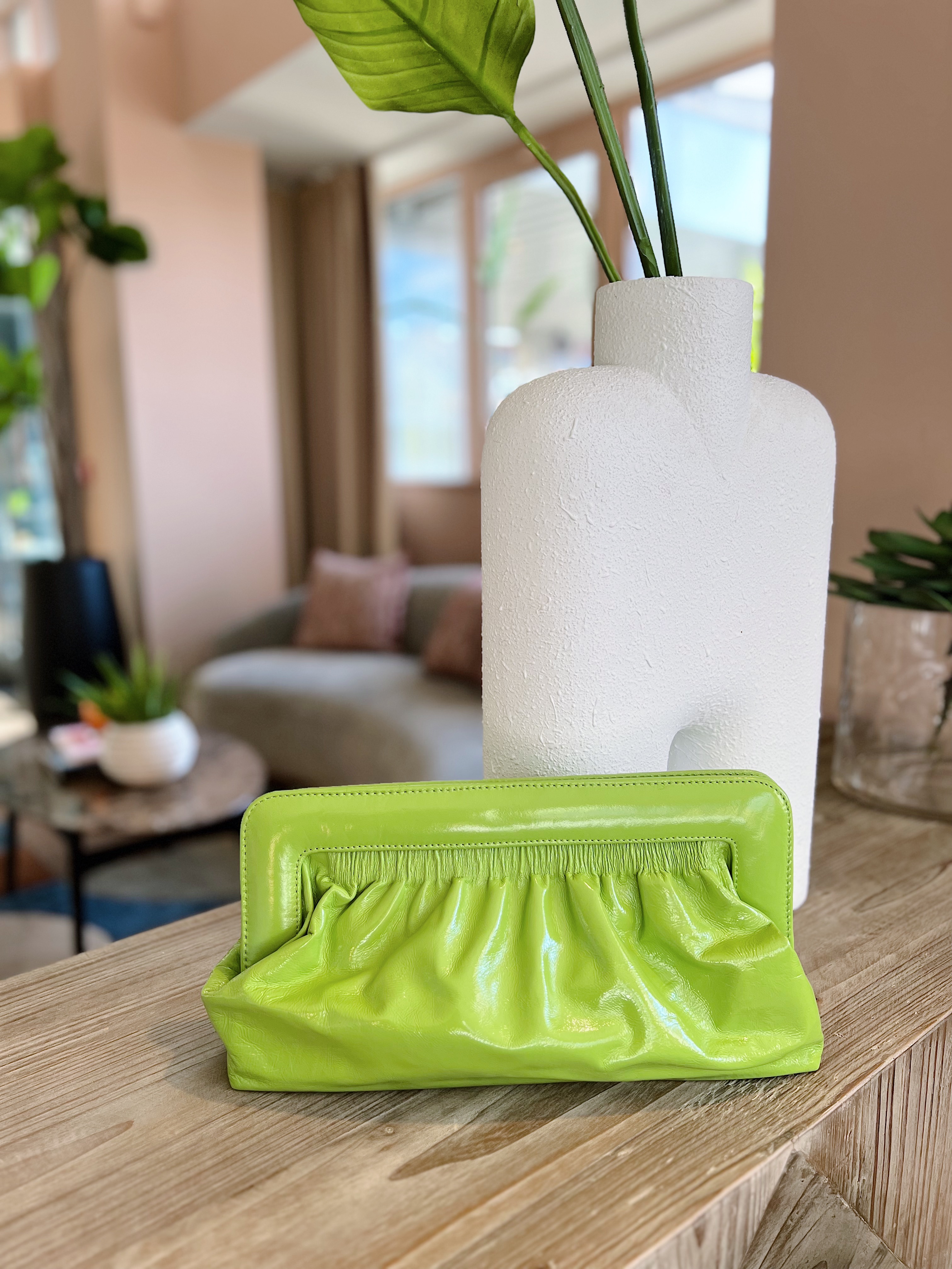 Velda Midi Patent Clutch - Dark Citron