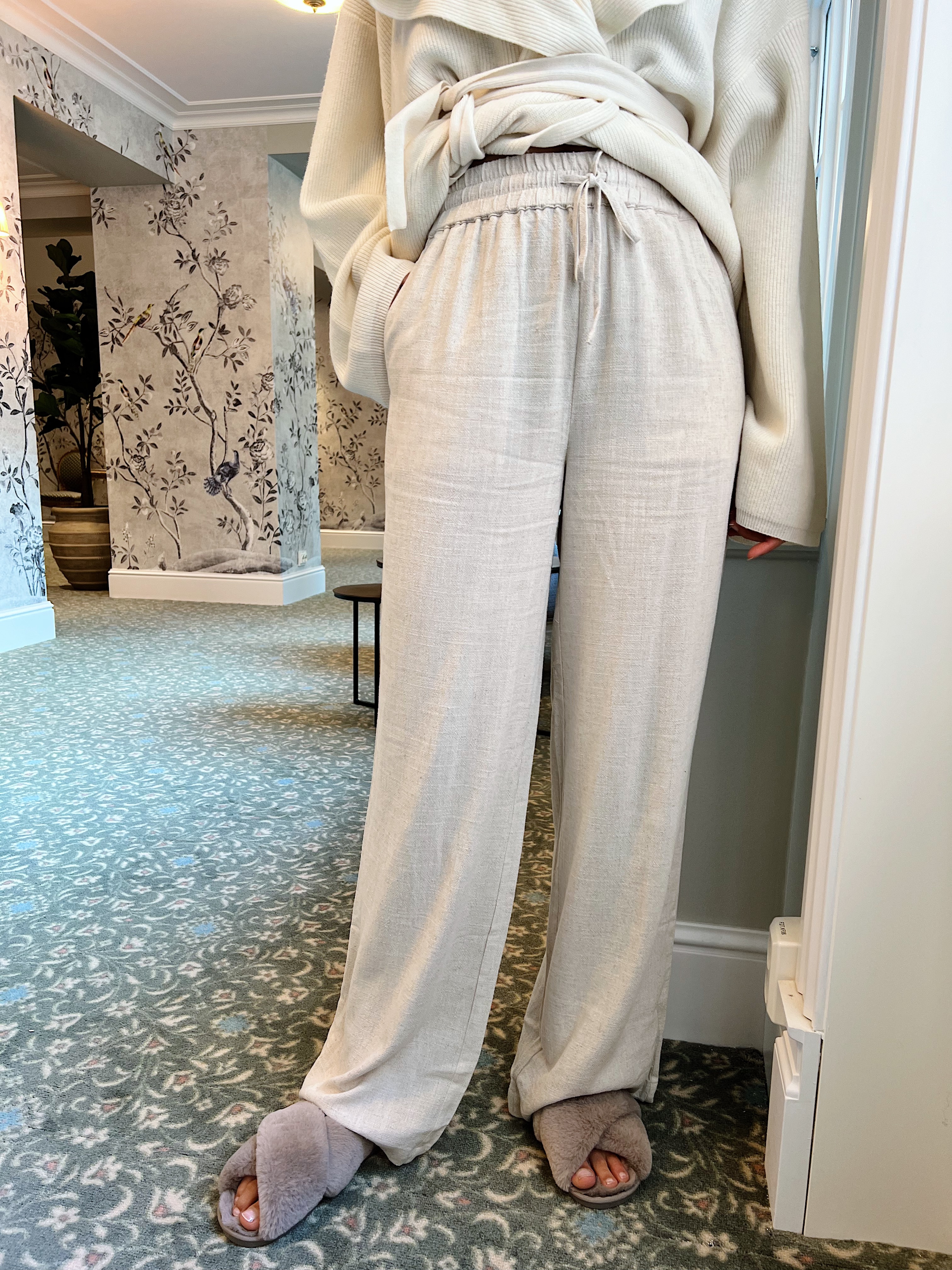«Viva gulia long linen pant» fra Selected Femme. Herlig bukse i deilig lin og viskose kvalitet. Buksen har vie rette ben og har bred strikk i midjen med knyting.