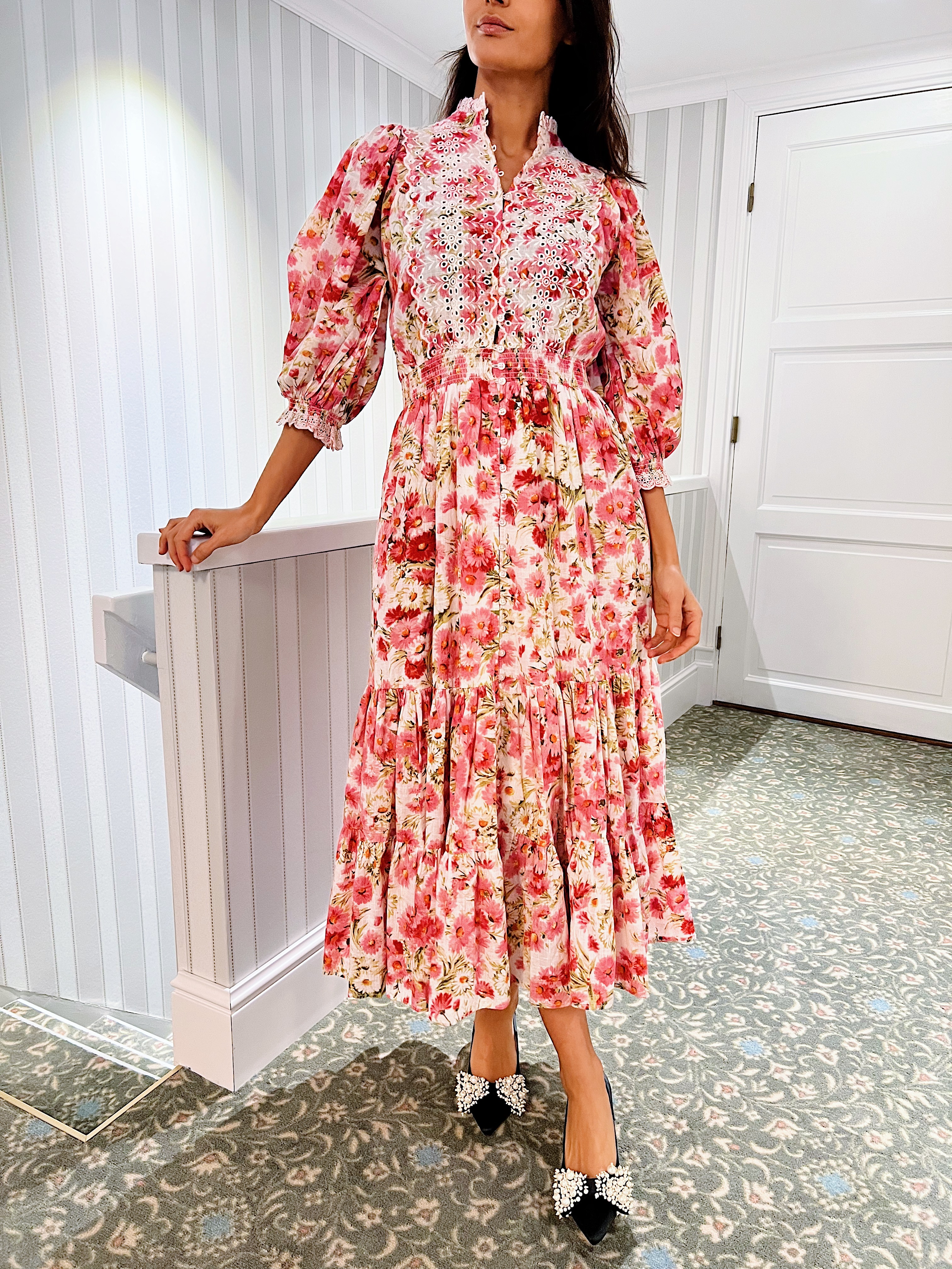 Cotton Slub Midi Dress - Daisy Garden