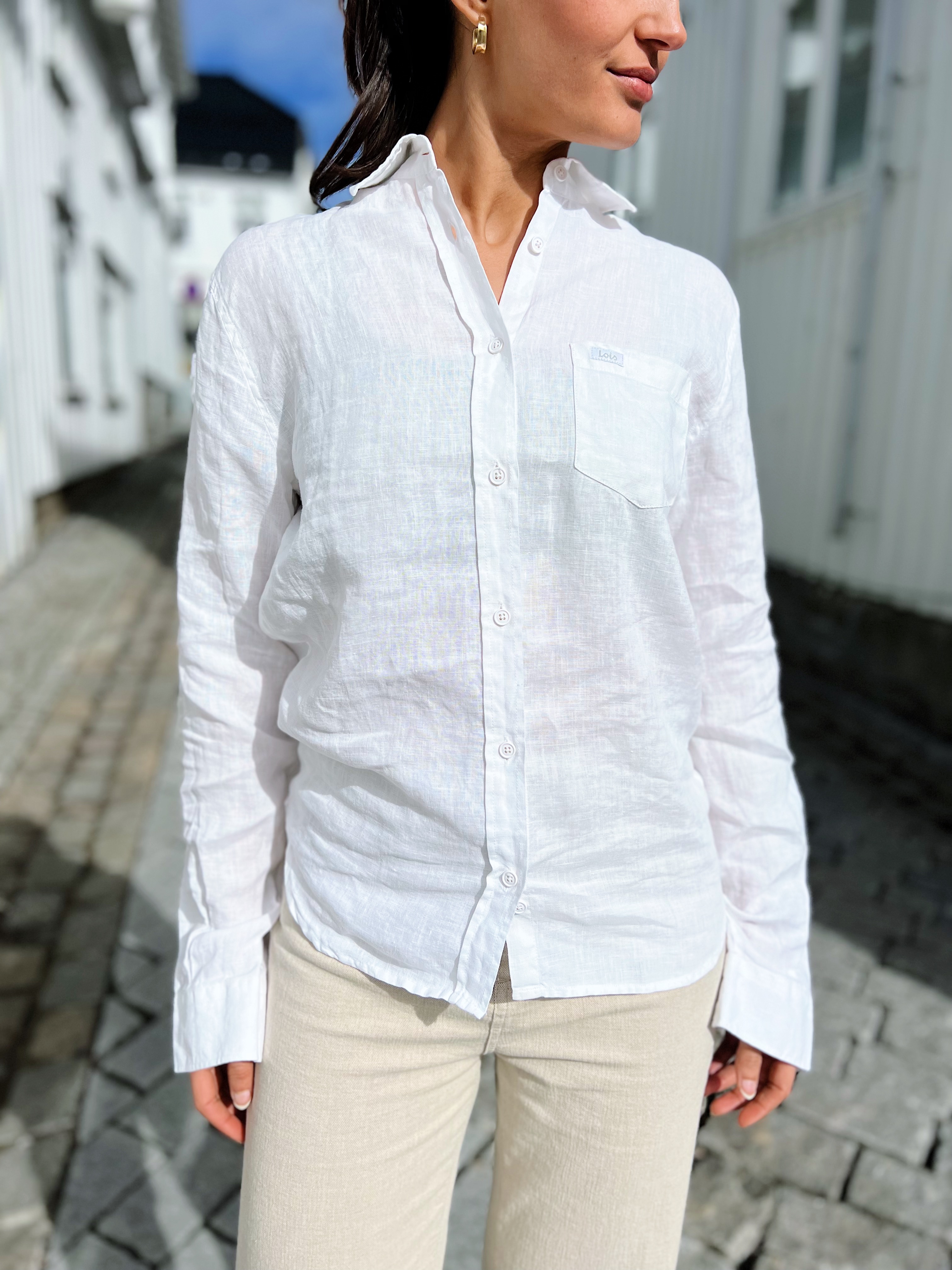 «Lucas linen summertime» fra Lois. Klassisk linskjorte i hvit. Skjorten har krage, lang erm og lukkes med knapper.