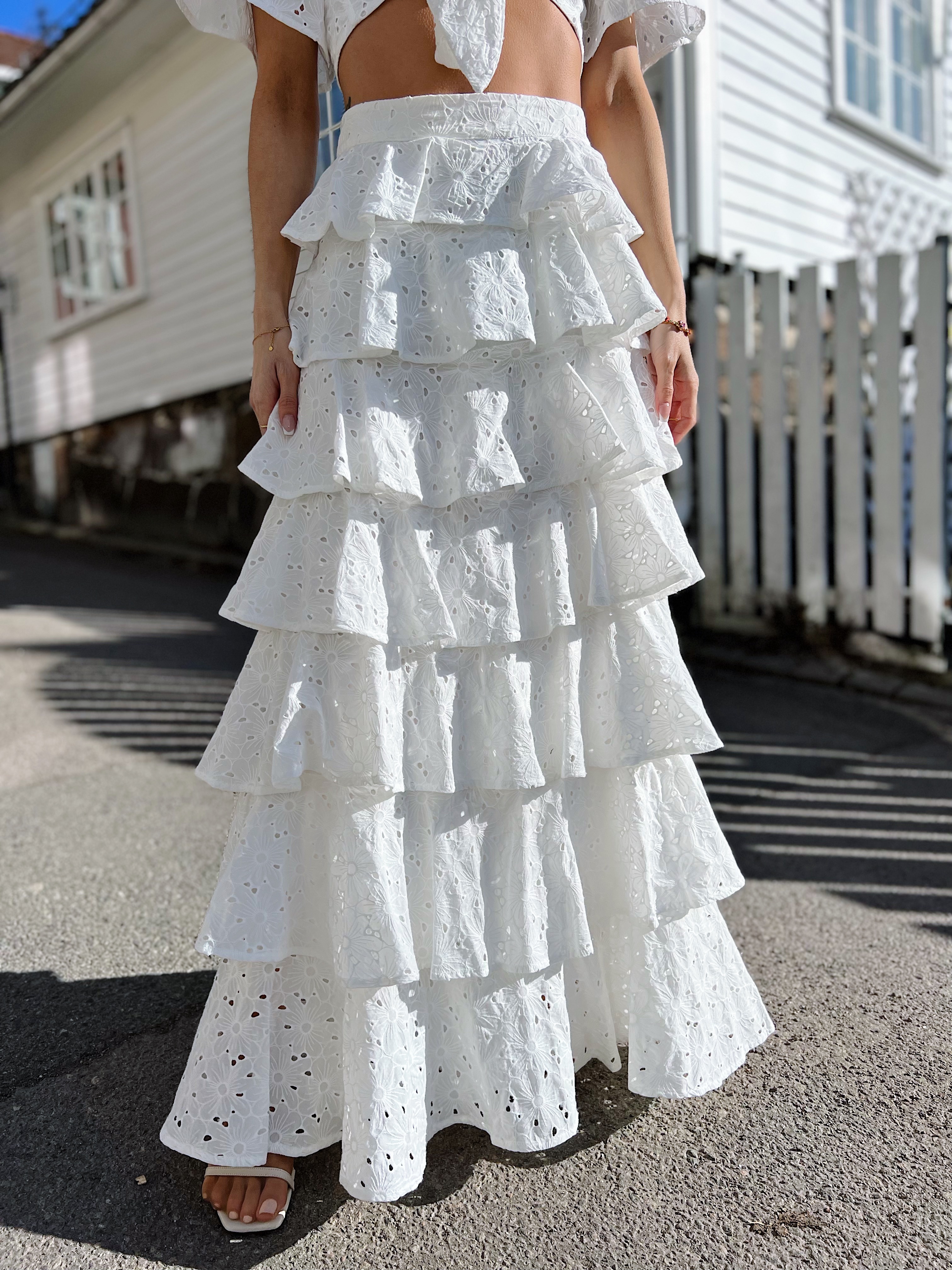 «Angel maxi skirt» fra Love Lolita. Vi er helt forelsket i dette skjørtet! Engleskjørt er vårt favorittvalg for alle sommerfester og arrangementer. Lukes med glidelås bak. Bruk den med Clara topp for en matchende og fabelaktig look.