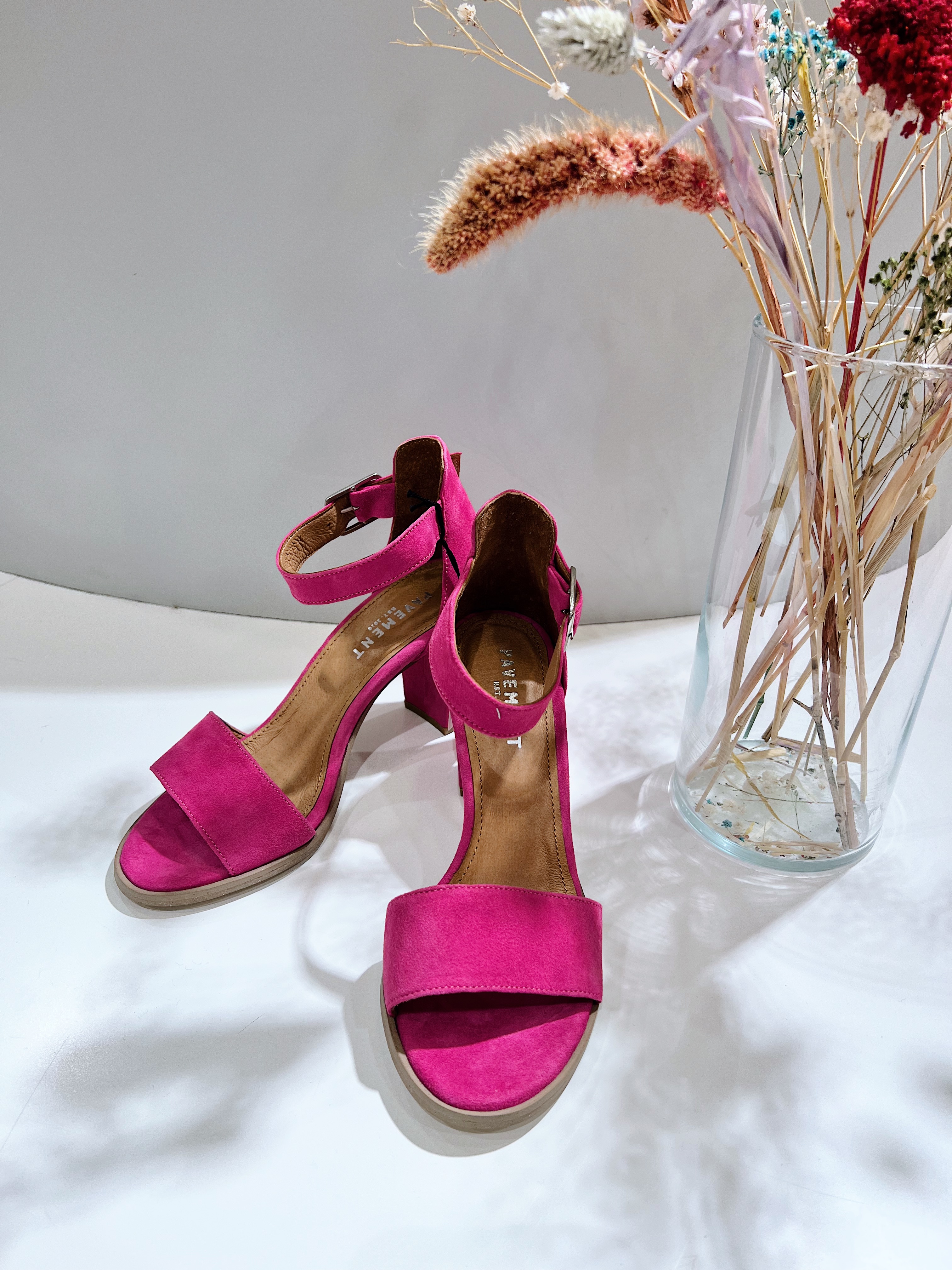 " Silke wave " fra Pavement er en pen høyhelt sko i lekker rosa farge, spenne rundt ankelen og folanger over fotristen.