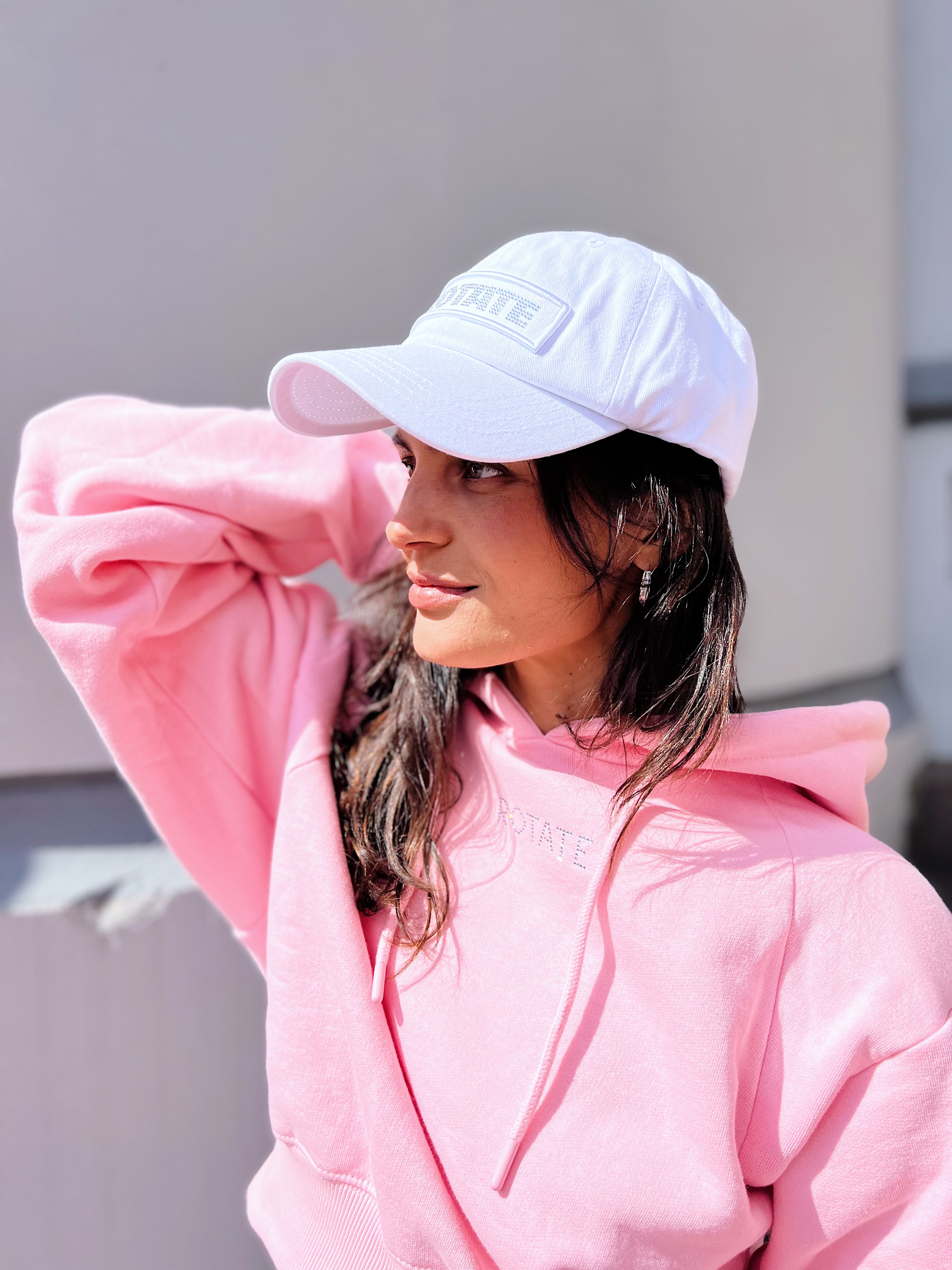 «Regular cap whit logo» fra Rotate. Denne kule capsen er laget av 100 % økologisk bomull. Den har justerbar rygglukking og visir. Capsen har ROTATE logo brodert foran med glitter effekt.