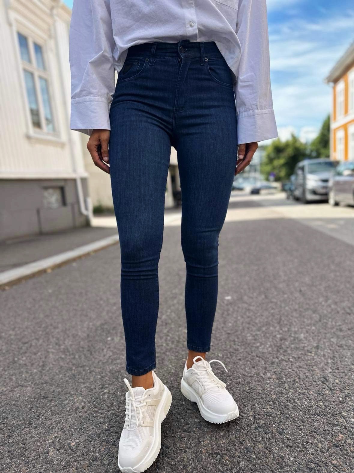 "Celia Leia Beat" i vasken «Faded Stone» fra Lois. Denne jeansmodellen har høyt liv, god stretch og smale bein. Modellen har vært en bestselger i flere år.