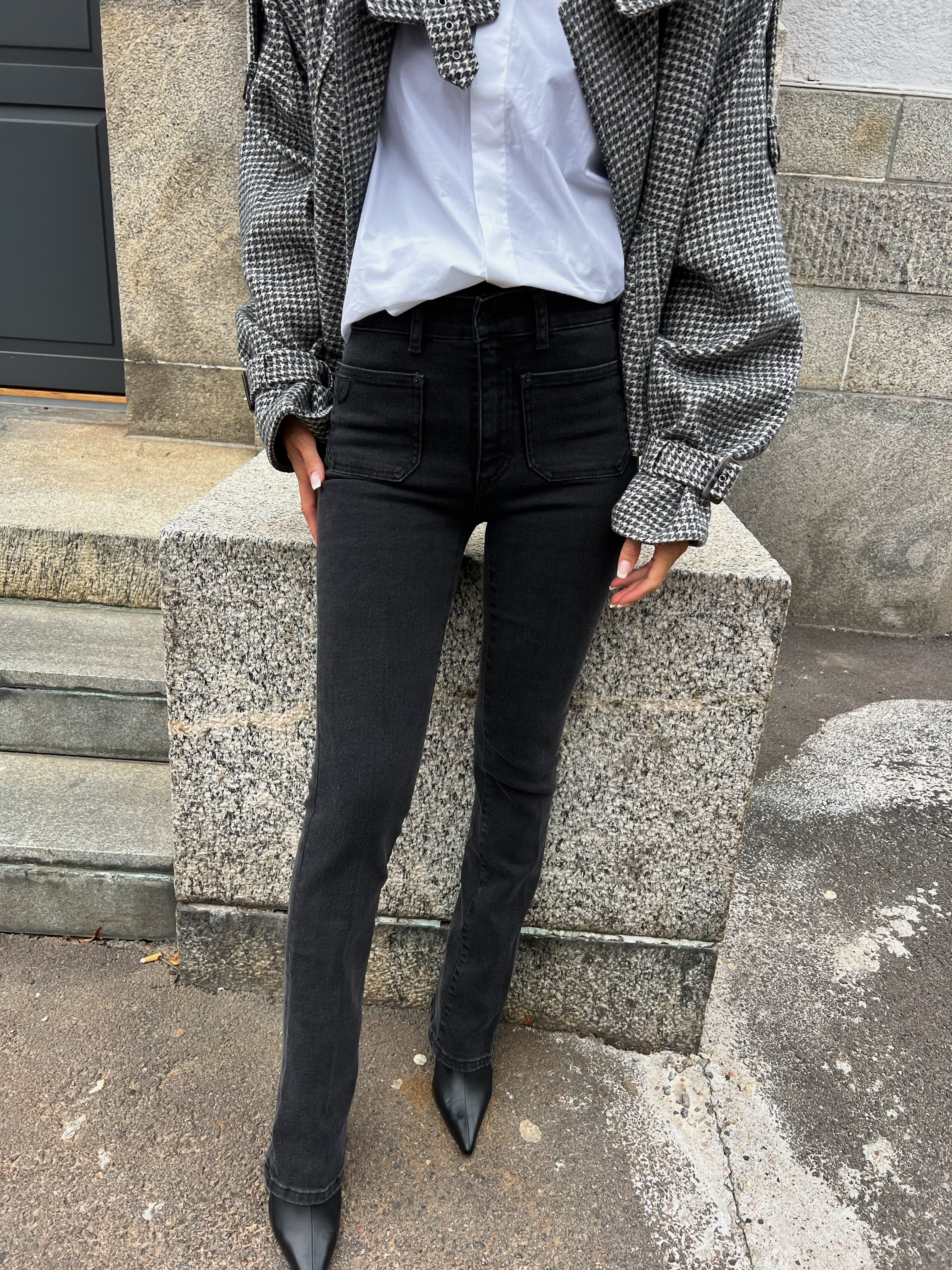 "Gaucho" fra Lois. Stilfull buksemodell fra Lois i blå. Gaucho har en komfortabel utforming med høyt liv, beltehemper og god stretch. Buksen har smal sleng i bena og er ettersittende over rumpe og lår for en flatterende passform. Lommer foran og lommer bak. Lukkes med knapp og glidelås i front.