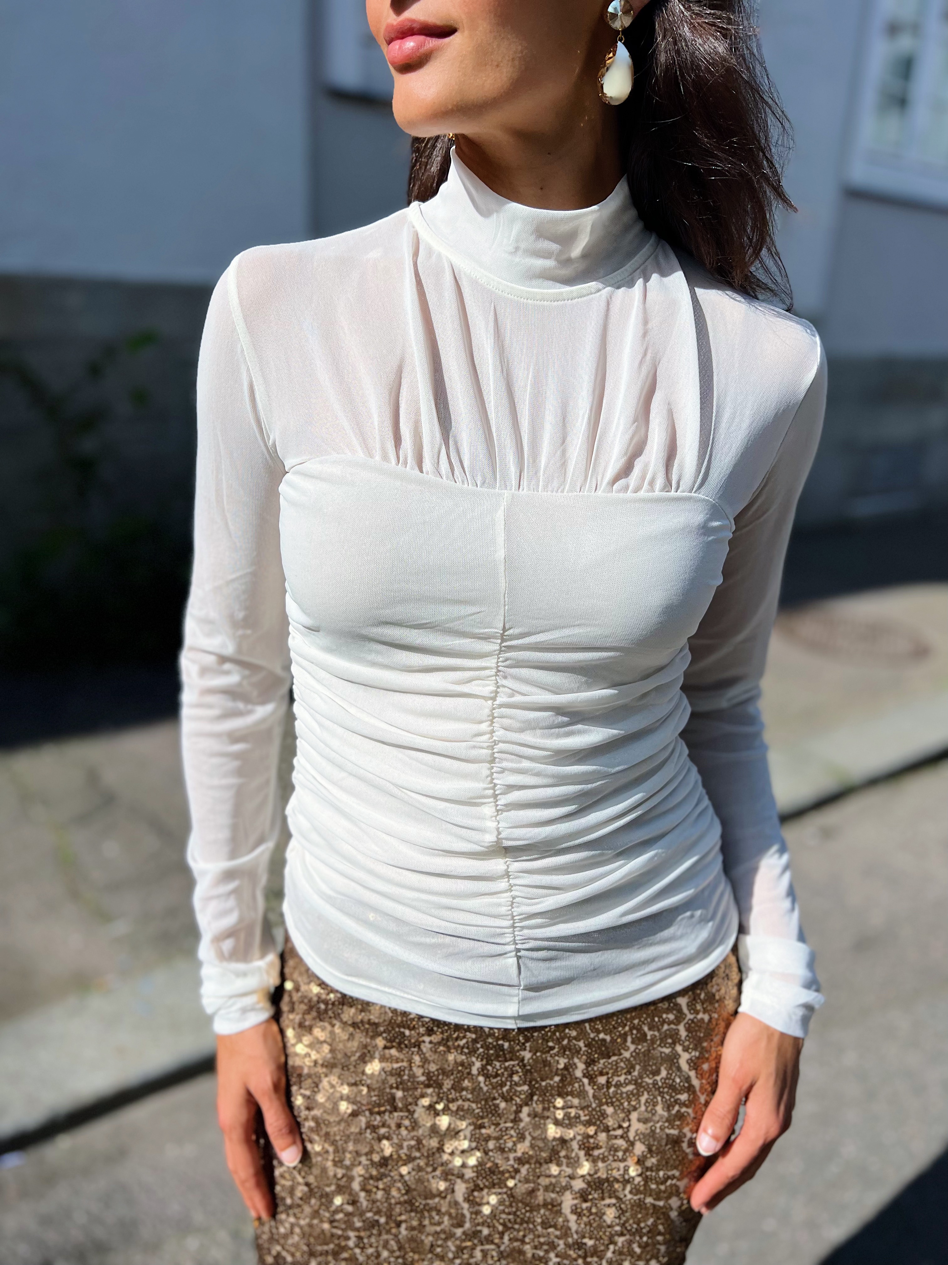 "Ewa Blouse" - Nydelig mesh top med lang arm og høy hals.