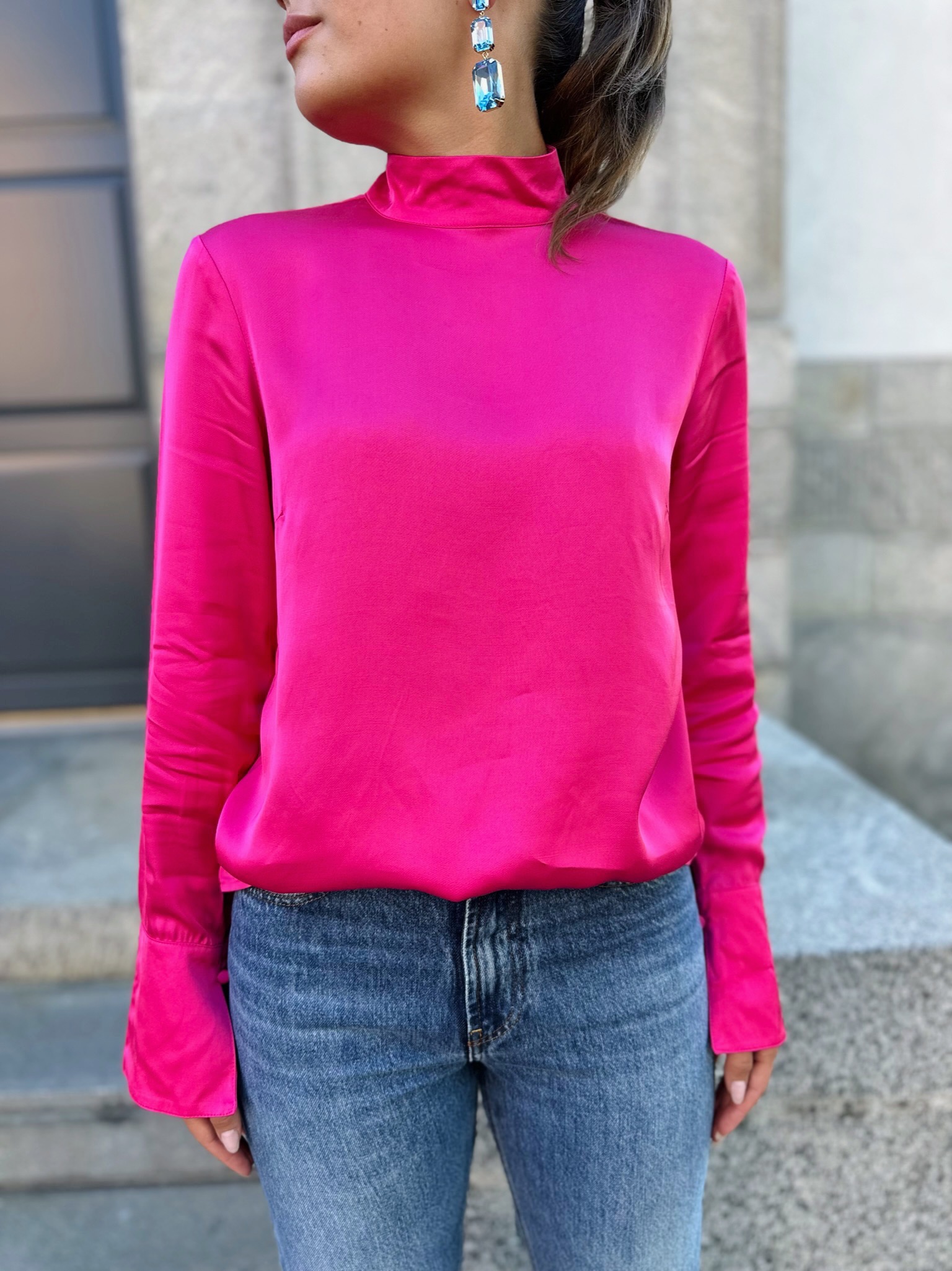 Ivy Satin Top - Fuchsia Purple