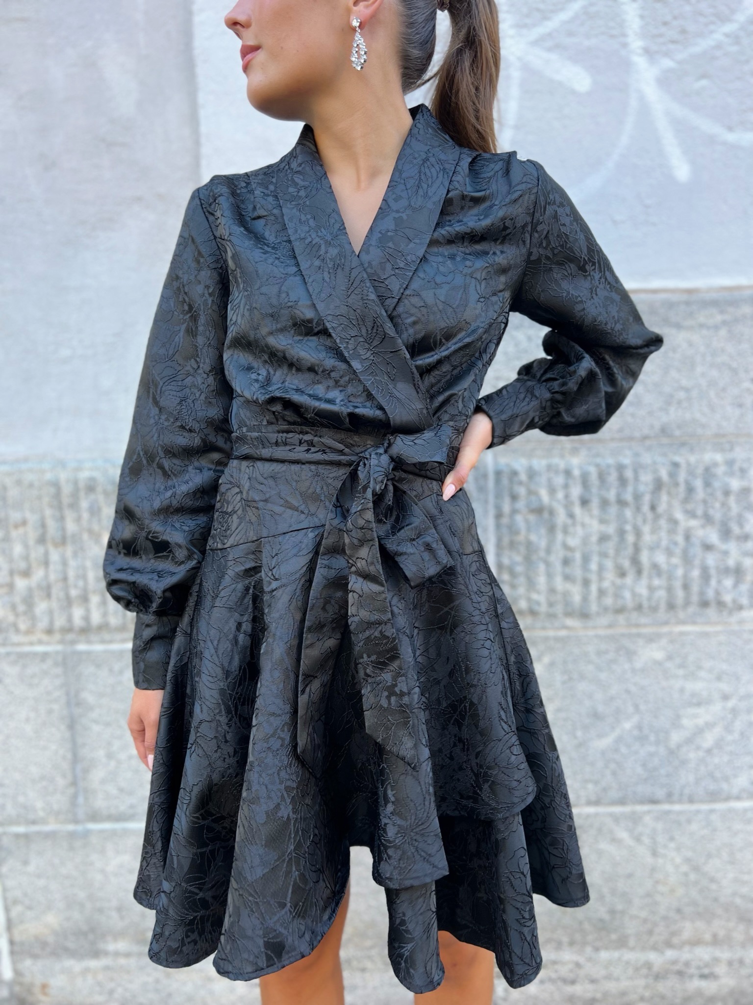 Wrap-stilen er lett å ha på og lett å ELSKE – den vil definitivt bli din nye favoritt. Kjolen har v-hals, lang erm og lukkes med knyting på siden.