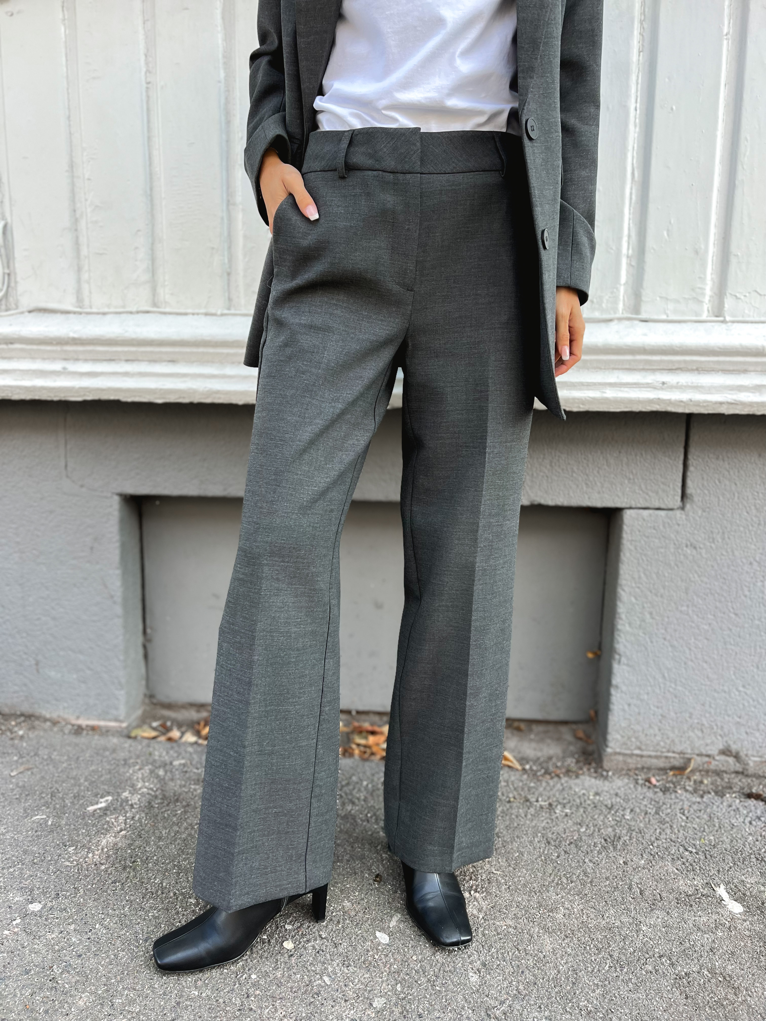 "Rita wide pant" fra Selected Femme er en klassisk sort dressbukse som passer til alt. Kan pyntes med en lekker bluse eller like fint med en strikkegenser. Den sitter over rumpe og lår, mens den er løs i beina. Buksen har to lommer foran og har beltestropper.