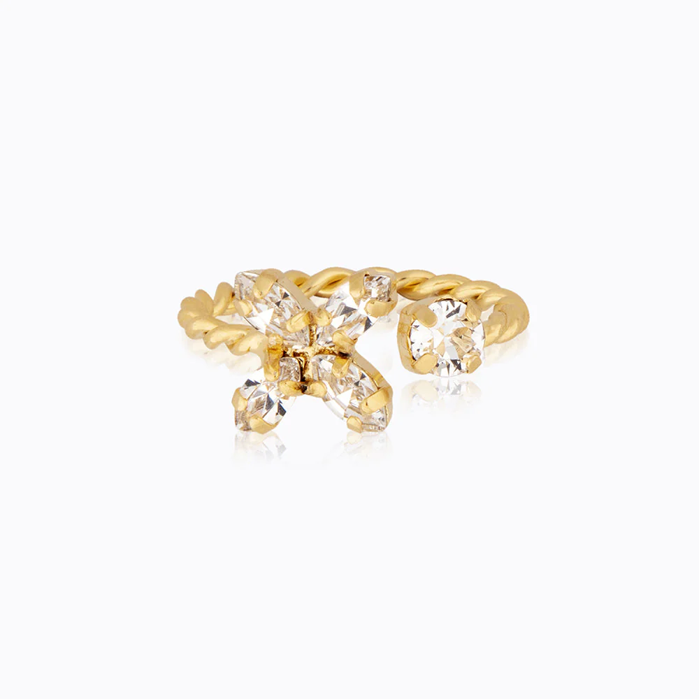 «Crystal star ring gold» fra Caroline Svebom. Dette herlige smykket med like deler av kraft og glam er noe ekstra og det perfekte smykket siden det fungerer med alt. Dette vakre smykket vil få deg til å skinne akkurat som den stjernen du er.