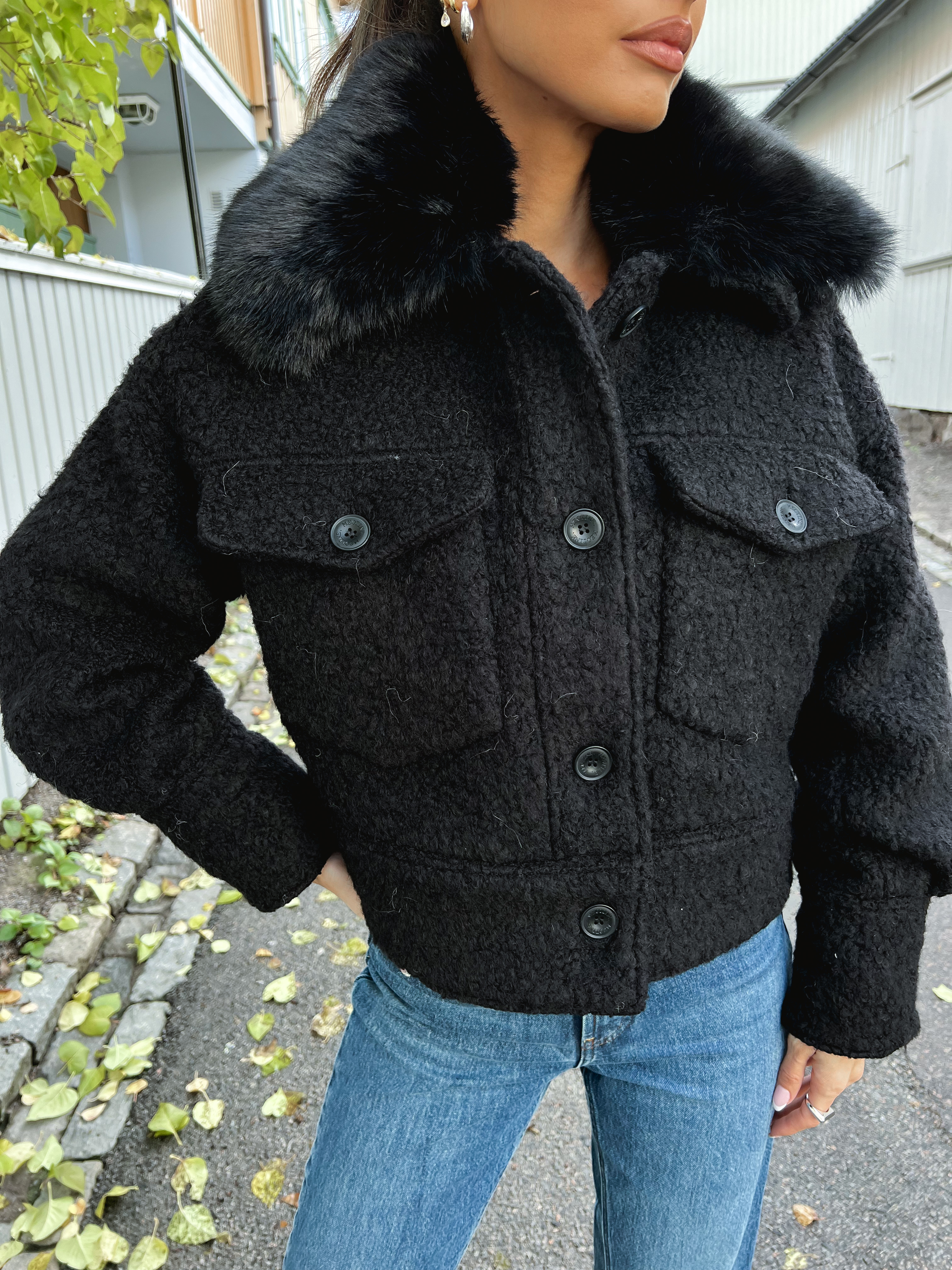 «Charlie jacket» fra Meotine er en superfin jakke med myk lammekrage. Lukkes med knapper, og har to brystlommer foran. Passformen er oversized og er utrolig lekker på.