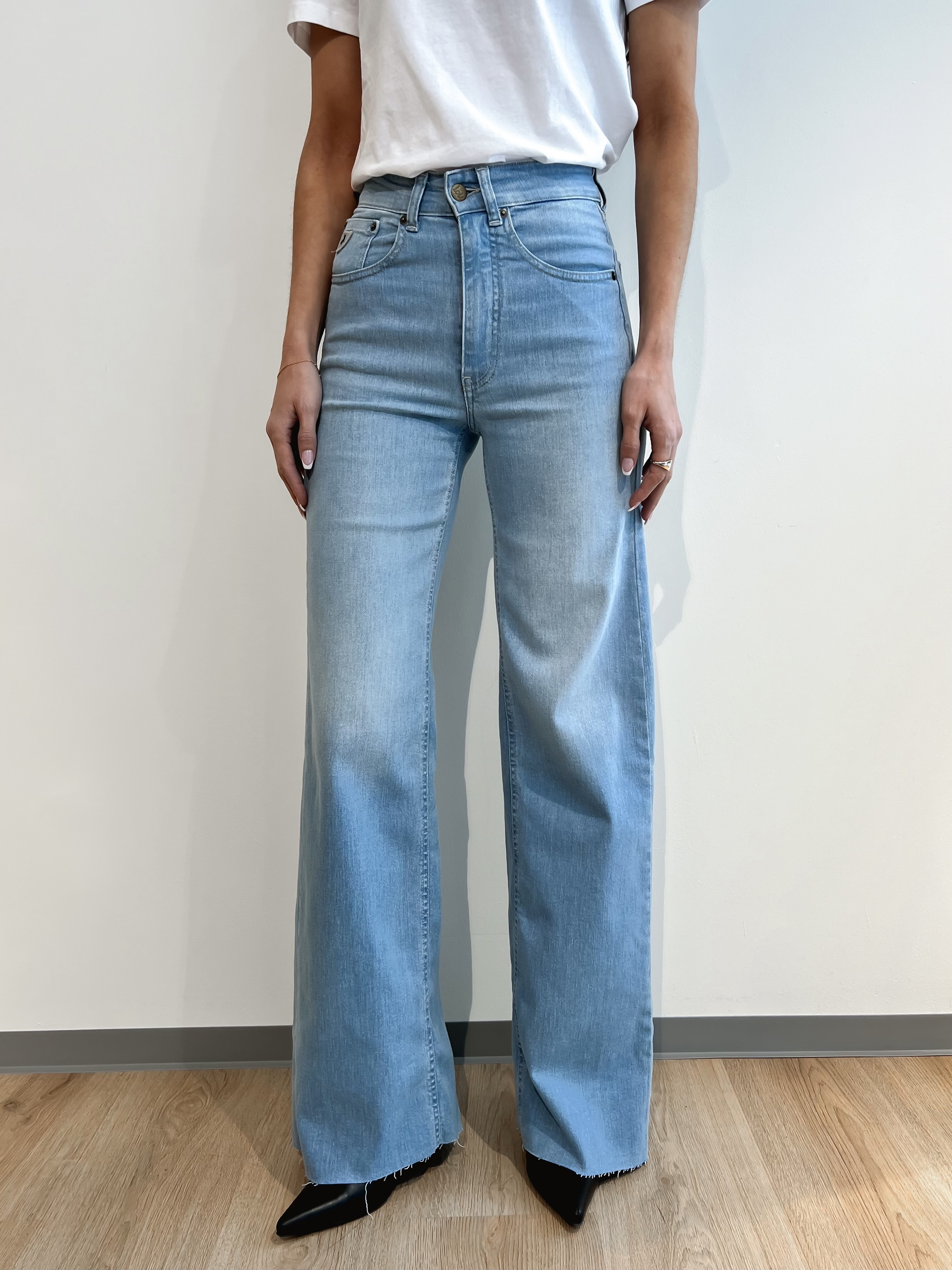 Denne jeansmodellen har høyt liv, god stretch og vide bein.