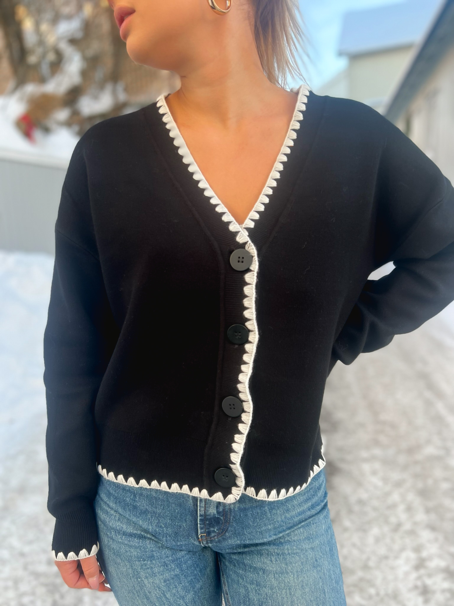 Stitch Knit Cardigan - Black/White