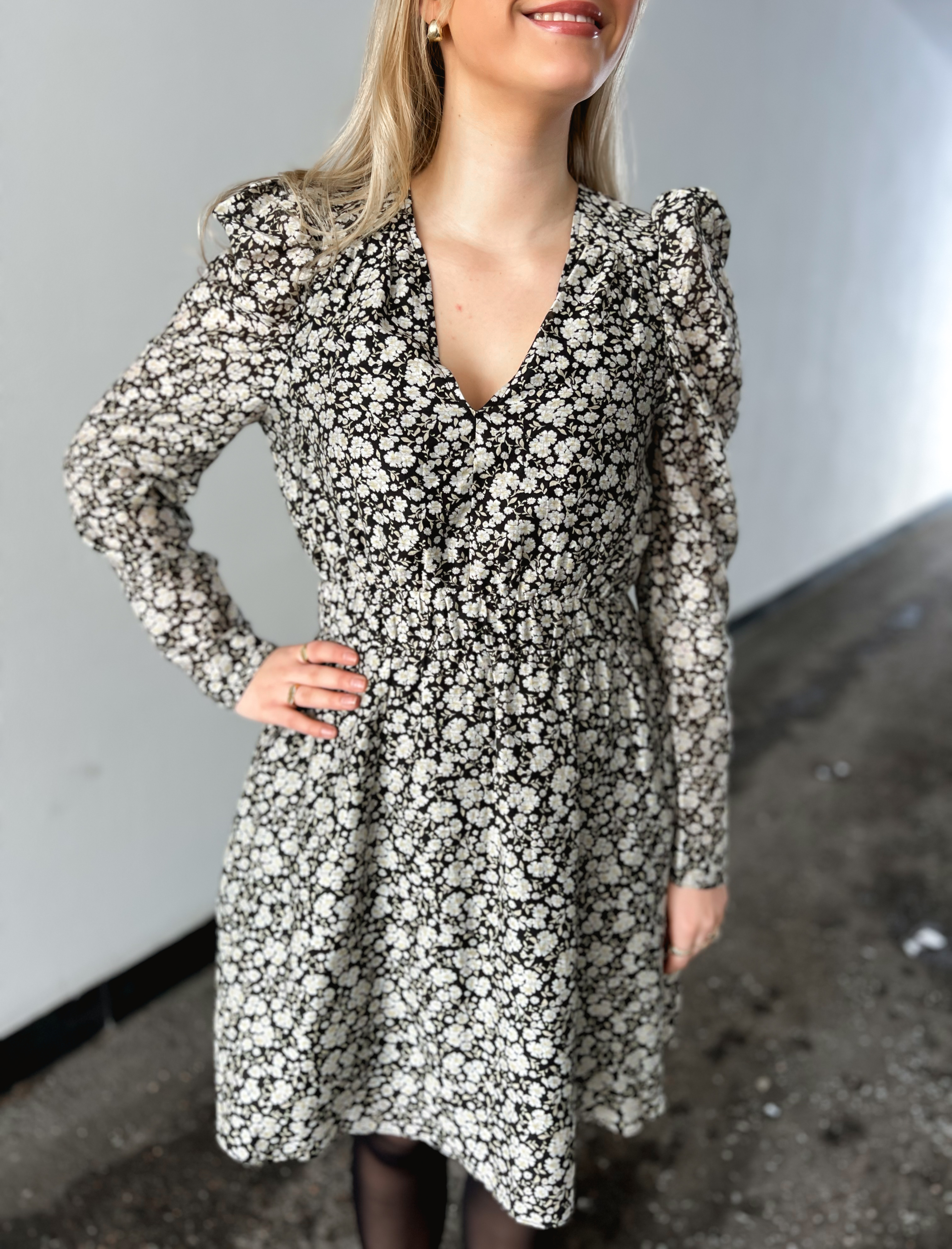 «Vivi dress» fra Second Female. Nydelig minikjole i et delikat blomsterprint. Kjolen har v-hals, lang erm med puffskuldre. A-formet skjørt. Perfekt kjole til festlig anledning.