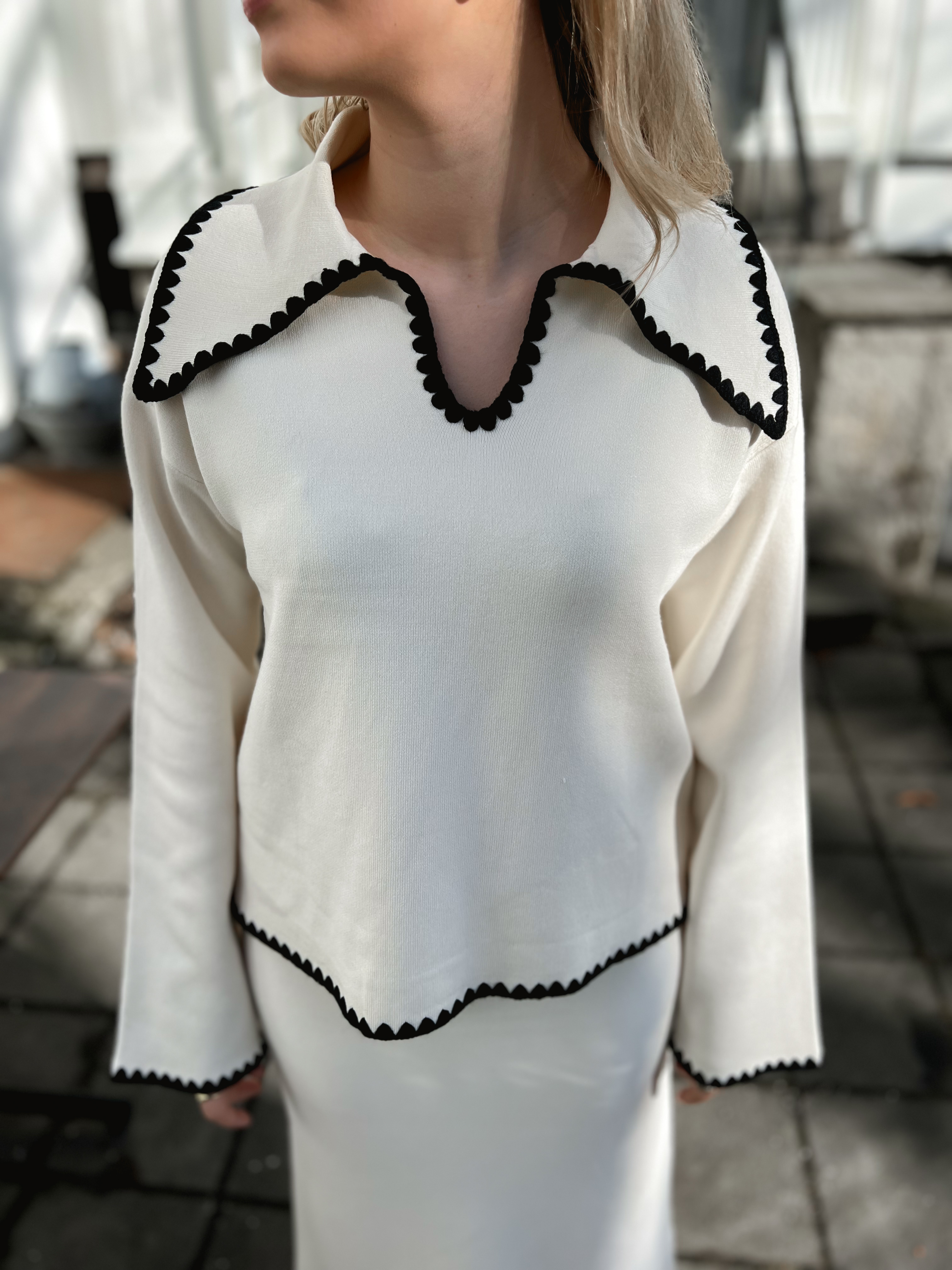 «Stitch knit pullover» fra YAS. Nydelig og behagelig genser med krage, V-hals og lange ermer, kontrasterende kant og avslappet passform.