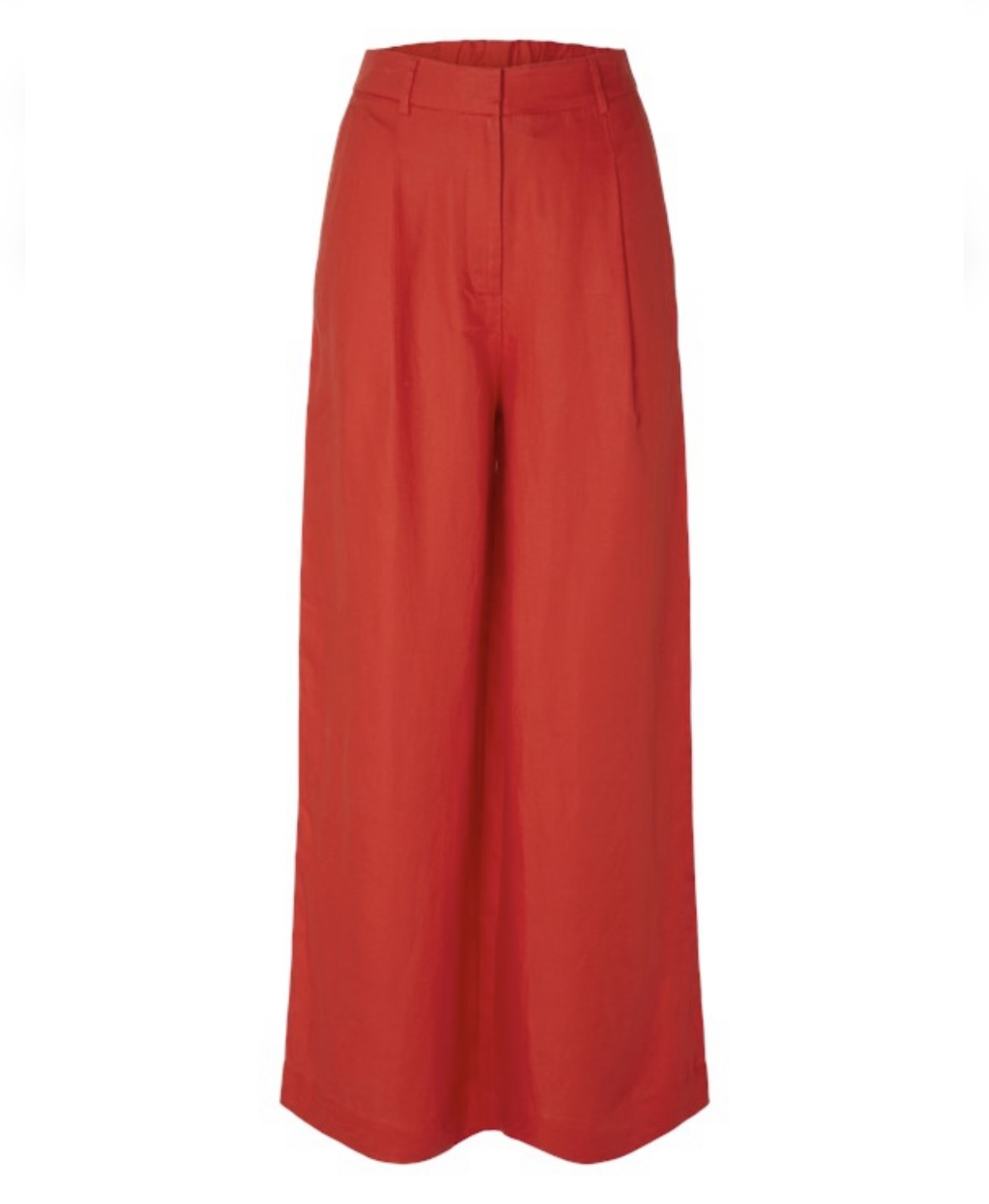 «Lyra wide linen pant» fra Selected Femme er en lang kul bukse, med brede ben. Høy midje.