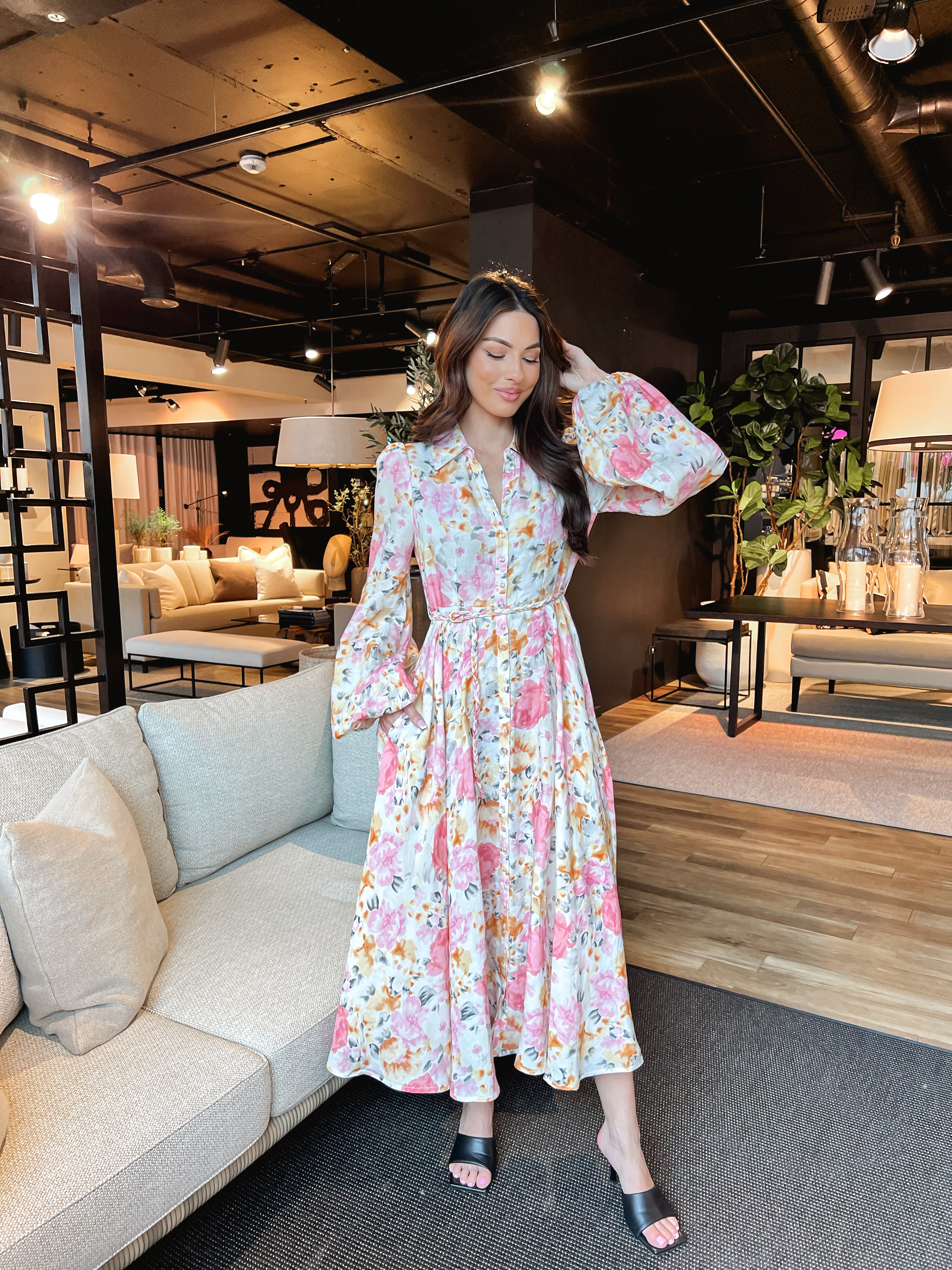 "Linen Collared Midi Dress fra by TiMo er en nydelig midi-kjole laget i lin og viskose. Kjolen har lange ermer, en skjortekrage og elastiske mansjetter. A-formet skjørt, knappelukking foran med stoffdekkede knapper og et tynt belte i midjen.