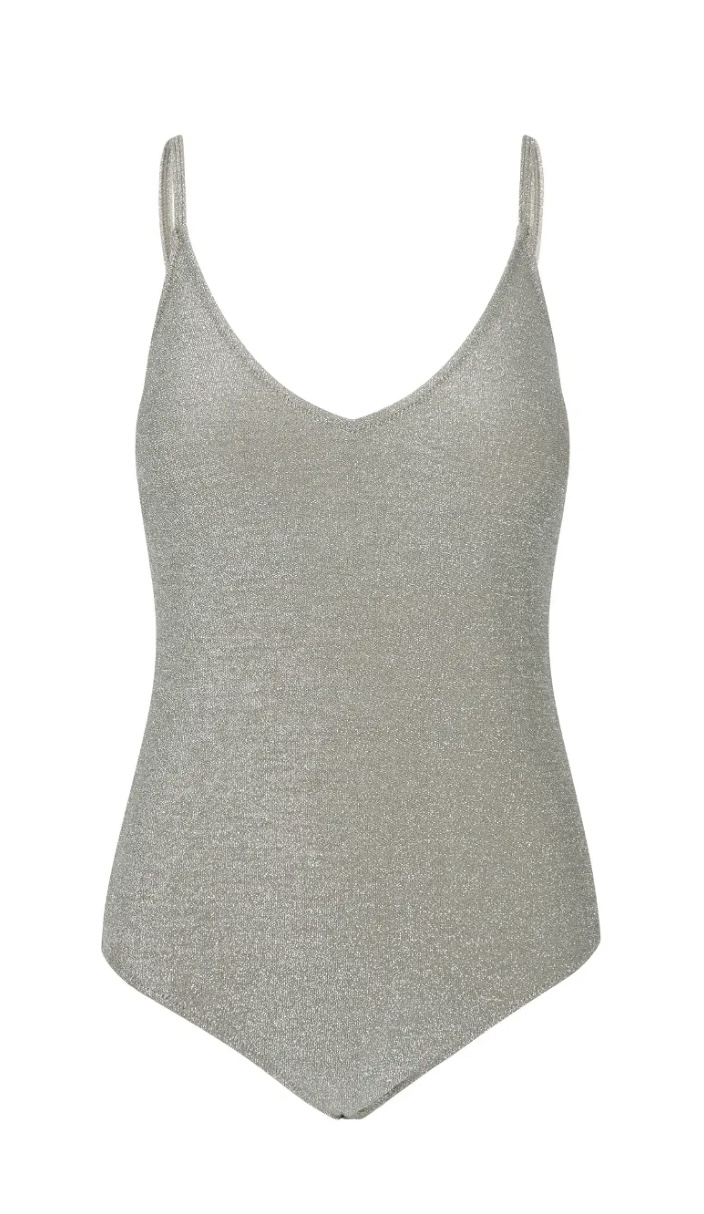«Glint Swimsuit» fra Second Female. Badedrakt med v-hals og stropper. Perfekt nå mot sommeren.