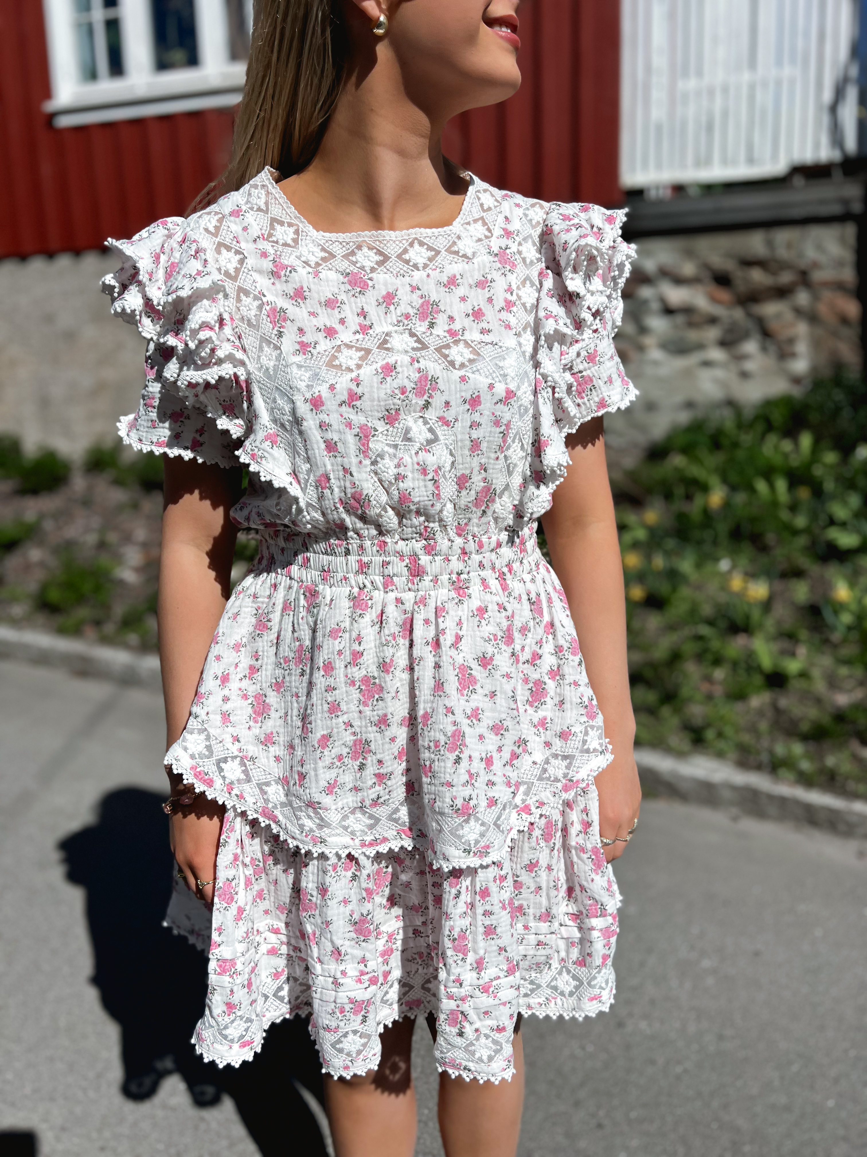 «Alexa dress» fra Love Lolita. Alexa kjole er en av våre favoritt sommerkjoler! Den er så lett å style og ha på seg til forskjellige anledninger. Den ser bra ut stylet med begge hælene som den gjør med sneakers. Søte blonder og volanger gir kjolen det bohemske utseendet vi elsker.