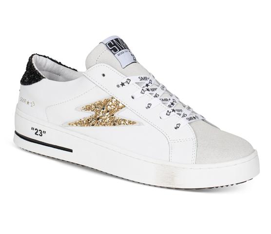 "Maya" er en lav sneaker i flott skinn fra franske SMR23. Innersåle i skinn med god demping. Detaljer i sort og gull glitter!