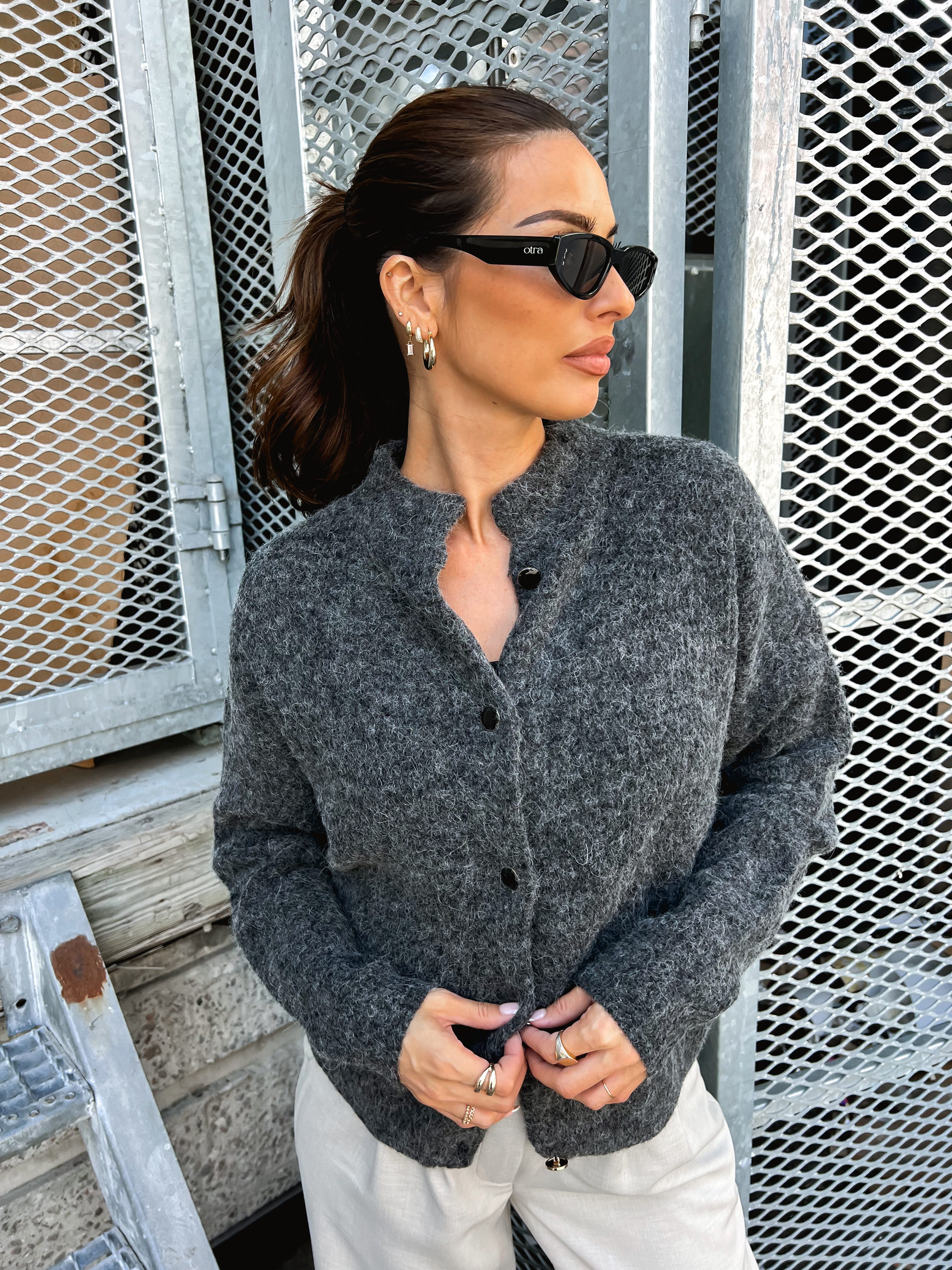 «Alpha short cardigan» fra Gestuz er en nydelig kort cardigan med lekre knepping foran. Loose fit. Normal i størrelsen.
